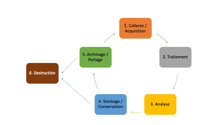 La gestion des données de recherche (GDR) comprend les processus utilisés tout au long du cycle de vie d’un projet de recherche pour orienter la collecte, la consignation, le stockage, le partage et la préservation des données de recherche et permet aux chercheuses et aux chercheurs de repérer et de consulter les données (Source : Alliance de recherche numérique du Canada).
