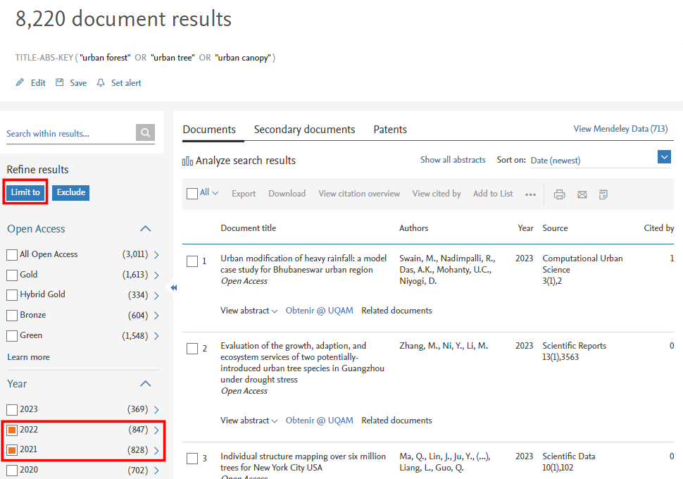 Nous avons ici réduit le nombre de résultats à l’aide du filtre des dates de publication (Figure 1).