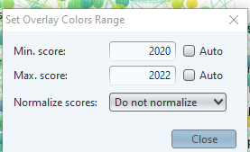 Vous pouvez ajuster la période de temps couverte par le graphe en cliquant sur l’échelle temporelle. Dans la fenêtre contextuelle qui apparaît, décochez « Auto » et entrez les années qui vous conviennent le mieux (Figure 20). Appuyez sur « Close » pour appliquer les changements et observez votre nouveau graphe. Est-ce que vous arrivez à discerner des évolutions à l’intérieur de la nouvelle fenêtre de temps que vous avez définie?