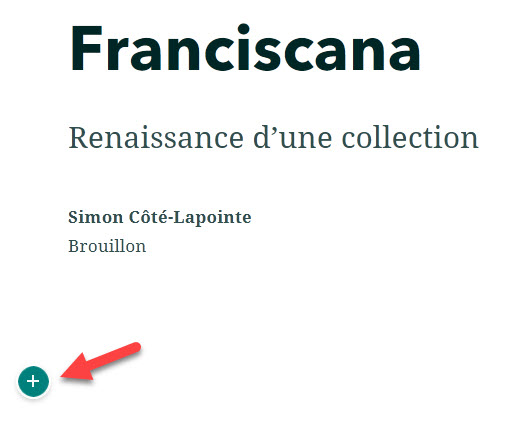 Pour débuter, sélectionnez l’option « Partir d’un modèle vierge ». Dans la nouvelle fenêtre d’édition, inscrivez le titre de votre projet. Pour ajouter du contenu, cliquez sur l’icône du + vert (Figure 6).
